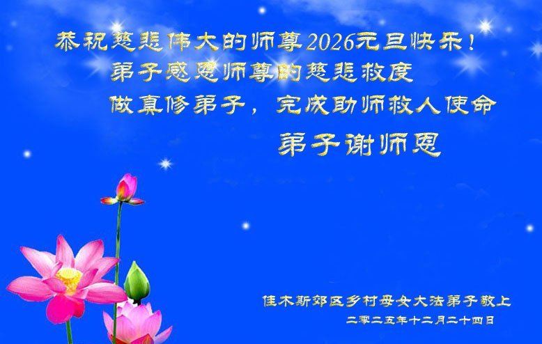 (Minghui.org) 2026 Yeni Yılı yaklaşırken, Çin'in kırsal bölgelerindeki birçok Falun Dafa uygulayıcısı, uygulamanın kurucusu Shifu Li Hongzhi'ye içtenlikle mutlu bir yeni yıl diliyor.