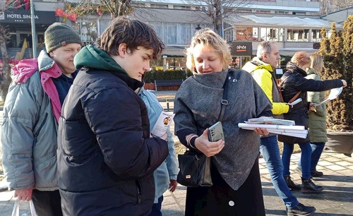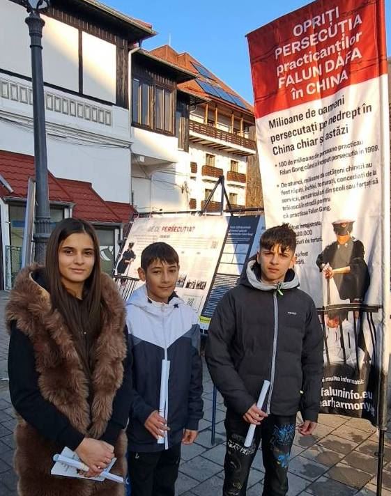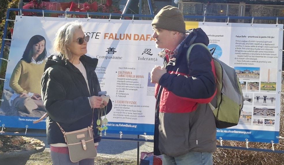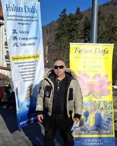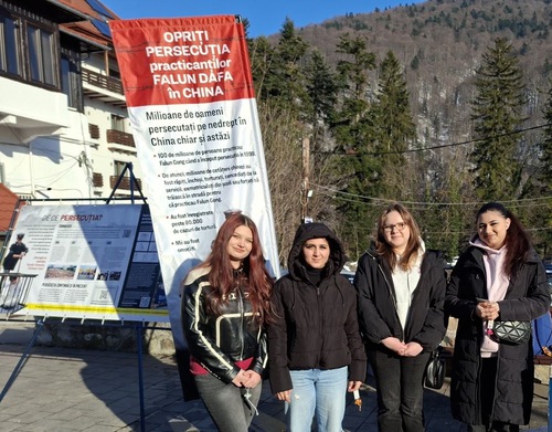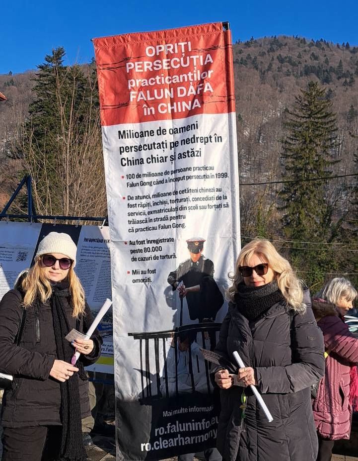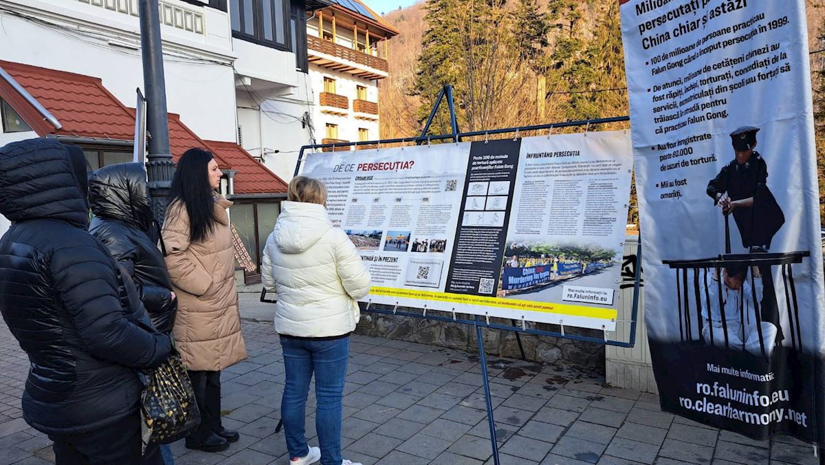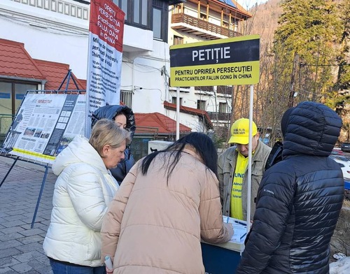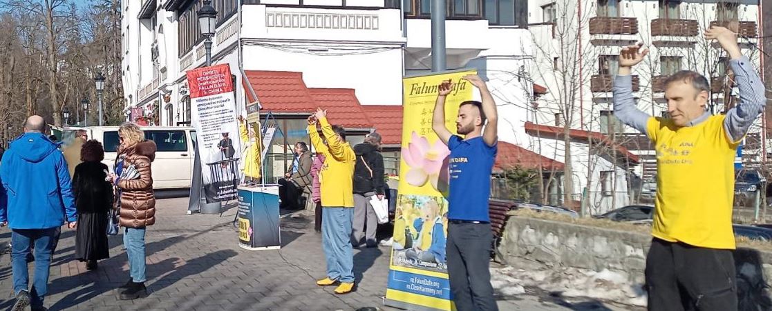 Falun Dafa uygulayıcıları, 27 Şubat - 1 Mart 2026 tarihleri arasında Romanya'nın Sinaia kentinde bir bilgilendirme standı kurdu. Burada egzersizleri gösterdiler ve insanlara Falun Dafa hakkında bilgi verdiler.